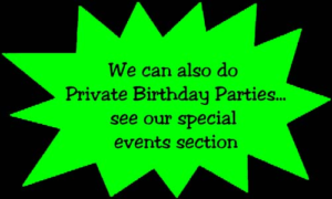 Parties are done on Saturday and Sunday afternoons from 2:00 - 4:00 p.m.